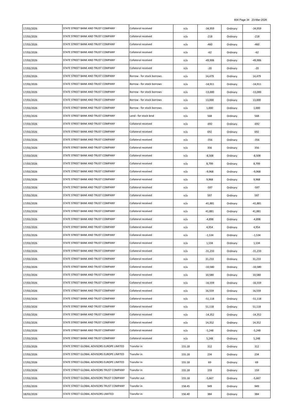 604 Page 34 23-Mar-2026 17/03/2026 n/a -34,959 Ordinary -34,959 17/03/2026 n/a -218 Ordinary -218 17/03/2026 n/a -460 Ordinary -460 17/03/2026 n/a -62 Ordinary -62 17/03/2026 n/a -49,906 Ordinary -49,906 17/03/2026 n/a -20 Ordinary -20 17/03/2026 n/a 14,479 Ordinary 14,479 17/03/2026 n/a -14,911 Ordinary -14,911 17/03/2026 n/a -13,000 Ordinary -13,000 17/03/2026 n/a 13,000 Ordinary 13,000 17/03/2026 n/a 1,000 Ordinary 1,000 17/03/2026 n/a 568 Ordinary 568 17/03/2026 n/a -692 Ordinary -692 17/03/2026 n/a 692 Ordinary 692 17/03/2026 n/a -356 Ordinary -356 17/03/2026 n/a 356 Ordinary 356 17/03/2026 n/a -8,508 Ordinary -8,508 17/03/2026 n/a 8,799 Ordinary 8,799 17/03/2026 n/a -9,968 Ordinary -9,968 17/03/2026 n/a 9,968 Ordinary 9,968 17/03/2026 n/a -597 Ordinary -597 17/03/2026 n/a 597 Ordinary 597 17/03/2026 n/a -41,881 Ordinary -41,881 17/03/2026 n/a 41,881 Ordinary 41,881 17/03/2026 n/a -4,898 Ordinary -4,898 17/03/2026 n/a 4,954 Ordinary 4,954 17/03/2026 n/a -1,534 Ordinary -1,534 17/03/2026 n/a 1,534 Ordinary 1,534 17/03/2026 n/a -31,233 Ordinary -31,233 17/03/2026 n/a 31,233 Ordinary 31,233 17/03/2026 n/a -10,580 Ordinary -10,580 17/03/2026 n/a 10,580 Ordinary 10,580 17/03/2026 n/a -16,559 Ordinary -16,559 17/03/2026 n/a 16,559 Ordinary 16,559 17/03/2026 n/a -51,118 Ordinary -51,118 17/03/2026 n/a 51,118 Ordinary 51,118 17/03/2026 n/a -14,352 Ordinary -14,352 17/03/2026 n/a 14,352 Ordinary 14,352 17/03/2026 n/a -5,248 Ordinary -5,248 17/03/2026 n/a 5,248 Ordinary 5,248 17/03/2026 155.18 312 Ordinary 312 17/03/2026 155.18 234 Ordinary 234 17/03/2026 155.18 69 Ordinary 69 17/03/2026 155.18 159 Ordinary 159 17/03/2026 155.18 -5,667 Ordinary -5,667 17/03/2026 158.45 949 Ordinary 949 18/03/2026 156.40 384 Ordinary 384 STATE STREET BANK AND TRUST COMPANY Collateral received Collateral received STATE STREET BANK AND TRUST COMPANY Collateral received STATE STREET GLOBAL ADVISORS TRUST COMPANY Collateral received STATE STREET BANK AND TRUST COMPANY STATE STREET BANK AND TRUST COMPANY STATE STREET BANK AND TRUST COMPANY Collateral received Collateral received Collateral received STATE STREET BANK AND TRUST COMPANY Transfer in STATE STREET BANK AND TRUST COMPANY Collateral received STATE STREET BANK AND TRUST COMPANY Collateral received STATE STREET BANK AND TRUST COMPANY STATE STREET BANK AND TRUST COMPANY Transfer in STATE STREET BANK AND TRUST COMPANY Transfer in STATE STREET BANK AND TRUST COMPANY Collateral received Collateral received Borrow - for stock borrows STATE STREET BANK AND TRUST COMPANY STATE STREET BANK AND TRUST COMPANY STATE STREET BANK AND TRUST COMPANY Collateral received Collateral received STATE STREET GLOBAL ADVISORS EUROPE LIMITED Borrow - for stock borrows STATE STREET BANK AND TRUST COMPANY Collateral received STATE STREET BANK AND TRUST COMPANY STATE STREET GLOBAL ADVISORS TRUST COMPANY Collateral received Transfer in Collateral received STATE STREET BANK AND TRUST COMPANY Collateral received Collateral received Collateral received STATE STREET BANK AND TRUST COMPANY STATE STREET BANK AND TRUST COMPANY STATE STREET BANK AND TRUST COMPANY STATE STREET BANK AND TRUST COMPANY Collateral received STATE STREET BANK AND TRUST COMPANY Collateral received STATE STREET GLOBAL ADVISORS EUROPE LIMITED STATE STREET BANK AND TRUST COMPANY Borrow - for stock borrows Transfer out STATE STREET BANK AND TRUST COMPANY Collateral received Collateral received STATE STREET GLOBAL ADVISORS TRUST COMPANY STATE STREET BANK AND TRUST COMPANY STATE STREET BANK AND TRUST COMPANY Collateral received STATE STREET BANK AND TRUST COMPANY Collateral received Collateral received STATE STREET BANK AND TRUST COMPANY Lend - for stock lend STATE STREET BANK AND TRUST COMPANY STATE STREET BANK AND TRUST COMPANY Collateral received STATE STREET GLOBAL ADVISORS LIMITED STATE STREET BANK AND TRUST COMPANY Collateral received Transfer in STATE STREET BANK AND TRUST COMPANY Collateral received Collateral received Collateral received STATE STREET BANK AND TRUST COMPANY Transfer in STATE STREET BANK AND TRUST COMPANY STATE STREET BANK AND TRUST COMPANY Collateral received Collateral received STATE STREET BANK AND TRUST COMPANY Borrow - for stock borrows Borrow - for stock borrows STATE STREET BANK AND TRUST COMPANY Collateral received STATE STREET GLOBAL ADVISORS EUROPE LIMITED STATE STREET BANK AND TRUST COMPANY STATE STREET BANK AND TRUST COMPANY