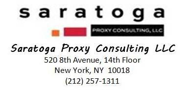 Shareholders call toll free at (888) 368-0379 Email: info@saratogaproxy.com