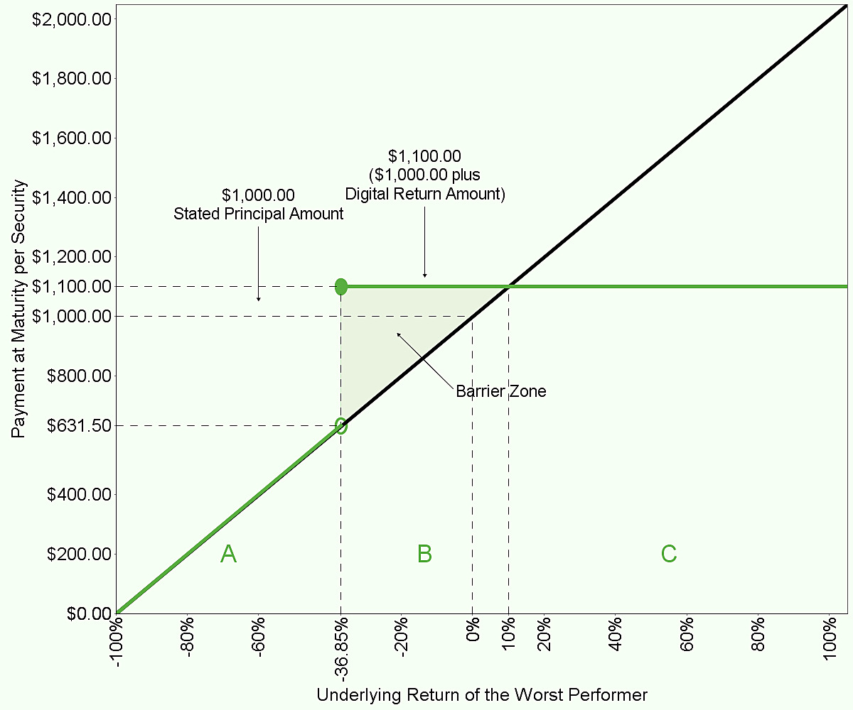** The diagram and the hypotheticals assume the lowest digital return amount at maturity.