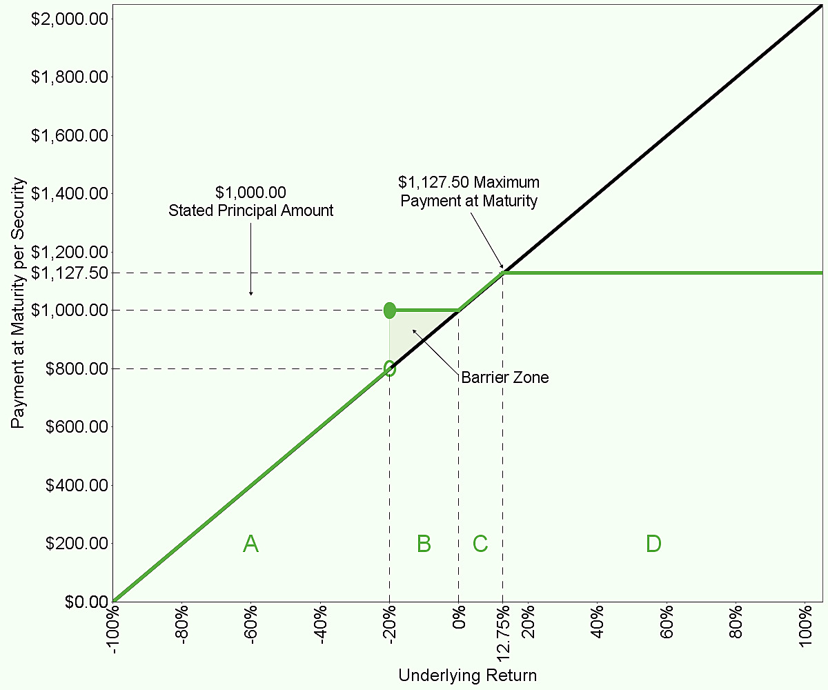 If the final underlying value is less than the final barrier value: $1,000 + ($1,000 × the underlying return)