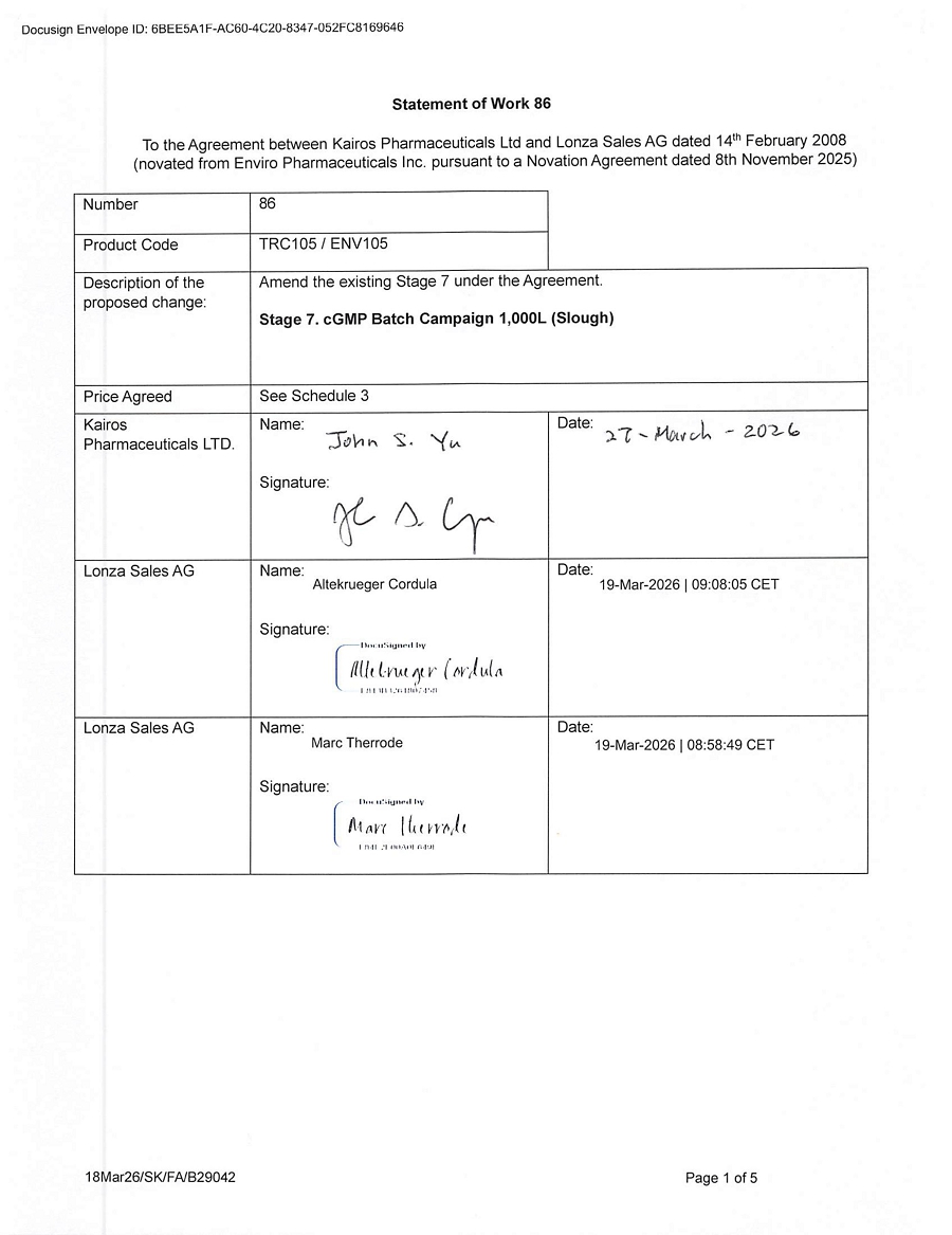 | KAIROS PHARMA, LTD. | ||
