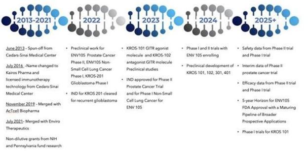 We have sought to develop a broad portfolio of novel and transformative drug therapies to treat cancer. Our current portfolio consists of seven drug therapies consisting of peptide and small molecule cancer immunotherapeutics KROS 101, 102, 201, 301 and 401 and therapeutic agents ENV 105 and 205. We started three clinical trials in the fall of 2023 for KROS 201 and ENV 105.