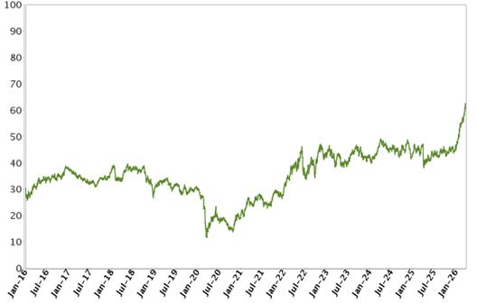 The following graph shows the daily historical performance of the XLE on its primary exchange in the period from January 1, 2016 through March 31, 2026. We obtained this historical data from Bloomberg L.P. We have not independently verified the accuracy or completeness of the information obtained from Bloomberg L.P. On March 31, 2026, the Closing Market Price of the XLE was $61.26. The graph below may have been adjusted to reflect certain actions, such as stock splits and reverse stock splits.