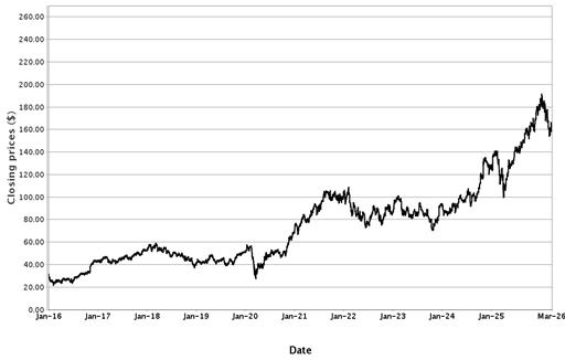 The following graphs set forth historical closing values of the Basket Underliers for the period from January 1, 2016 to March 30, 2026. We obtained the information in the graphs from Bloomberg Financial Markets, without independent investigation. We cannot give you assurance that the performance of the Basket Underliers will result in the return of all of your initial investment.