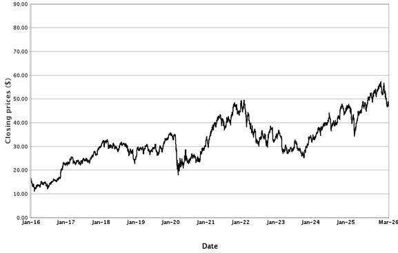 The following graphs set forth historical closing values of the Basket Underliers for the period from January 1, 2016 to March 30, 2026. We obtained the information in the graphs from Bloomberg Financial Markets, without independent investigation. We cannot give you assurance that the performance of the Basket Underliers will result in the return of all of your initial investment.