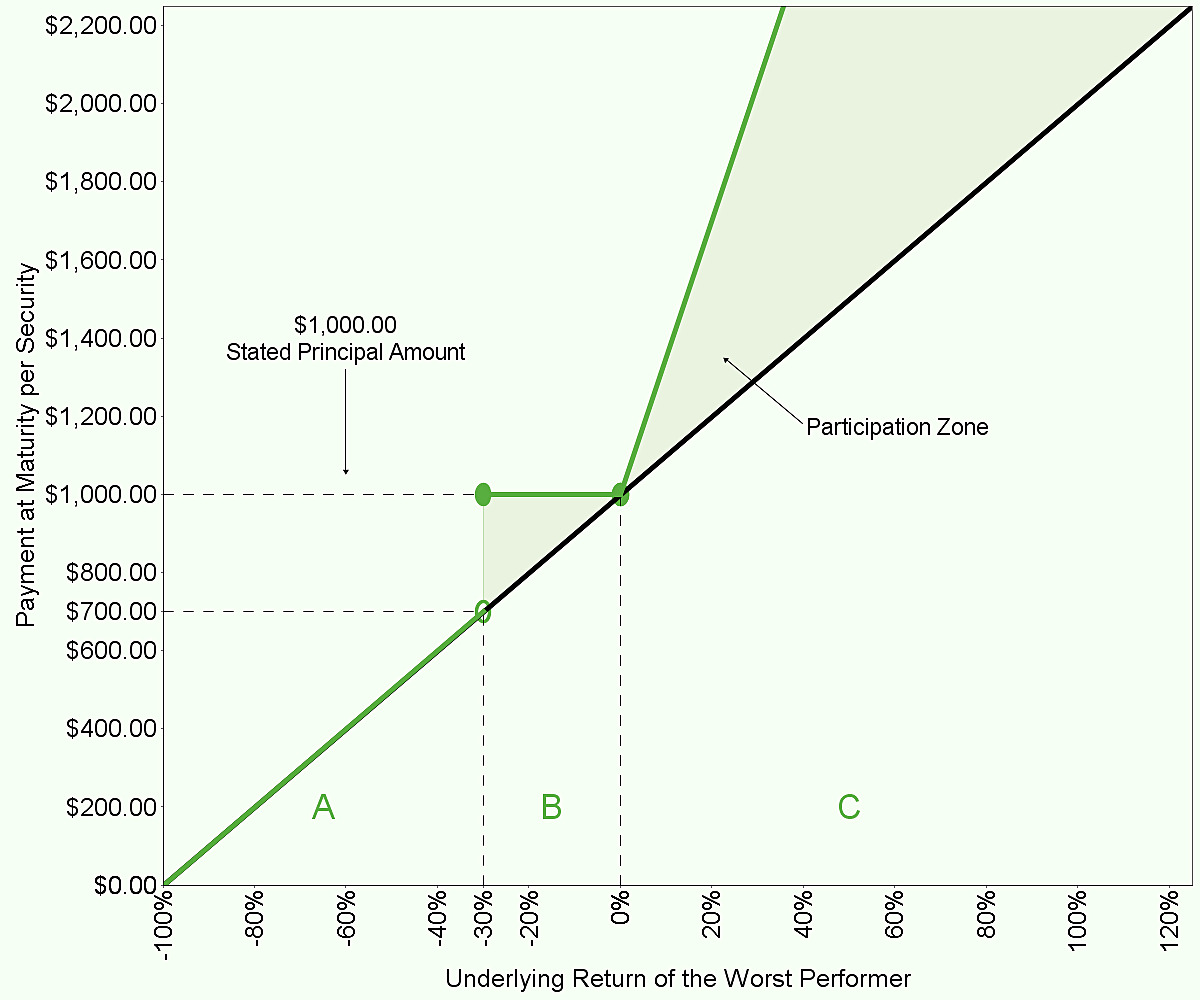 $1,000 × the underlying return of the worst performer × the upside participation rate |