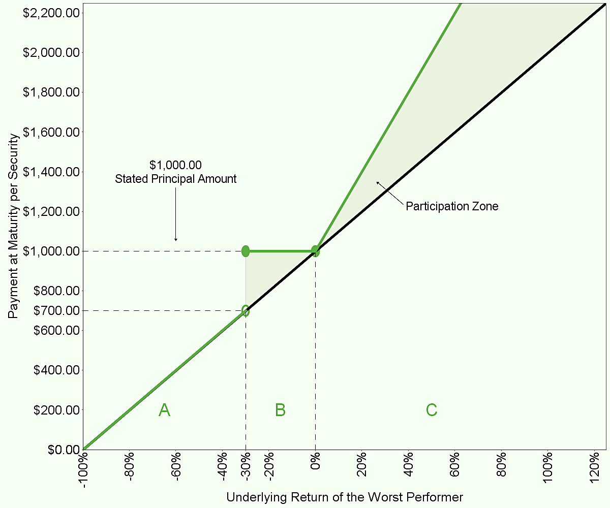 $1,000 × the underlying return of the worst performer × the upside participation rate |