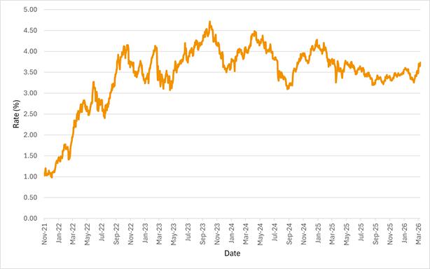 | Historical SOFR CMS5 Rate November 18, 2021 to March 27, 2026 |