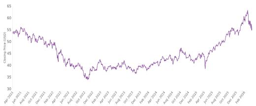 The following graph sets forth the historical performance of the EEM based on the daily historical closing prices from March 31, 2021 through March 31, 2026. We obtained the closing prices below from Bloomberg. We have not undertaken any independent review of, or made any due diligence inquiry with respect to, the information obtained from Bloomberg.