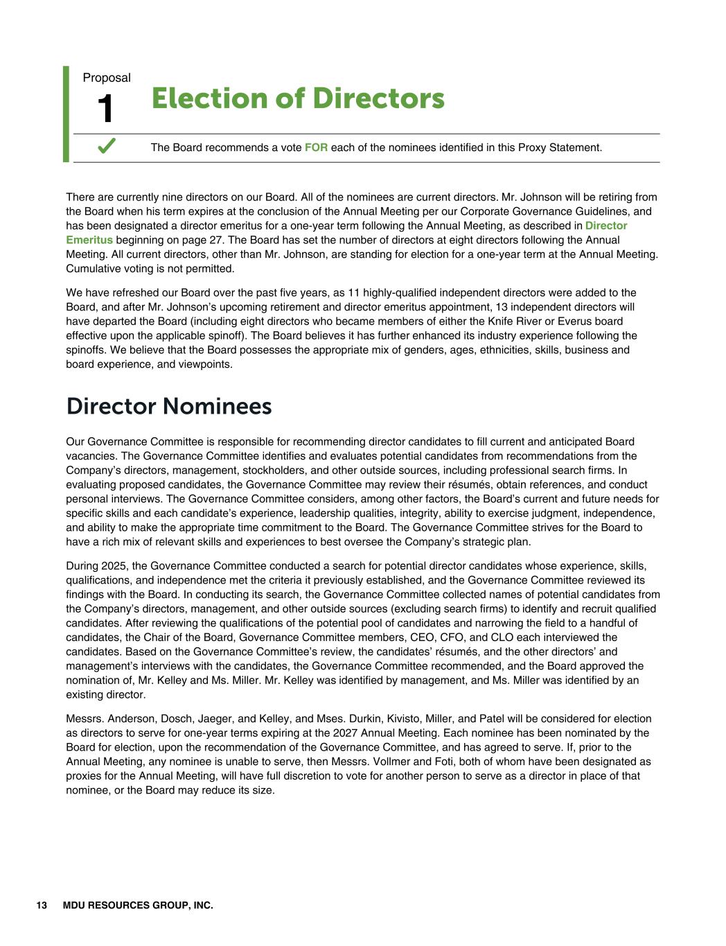 Proposal 1: Election of Directors 15 MDU RESOURCES GROUP, INC.