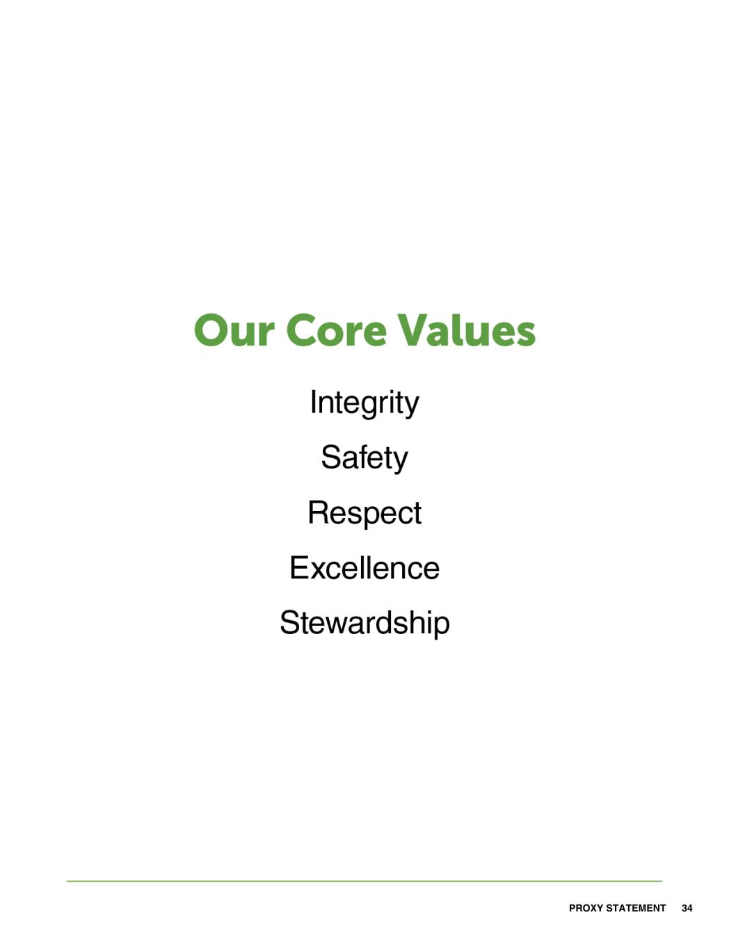 Cautionary Note Regarding Forward-Looking Statements This Proxy Statement contains forward-looking statements within the meaning of the U.S. securities laws. Forward-looking statements are all statements other than statements of historical fact, all statements which address activities, events, or developments that the Company anticipates will or may occur in the future, all statements based on underlying assumptions (any of which are based, in turn, upon further assumptions), including without limitation those statements that are identified by the words “anticipates,” “estimates,” “expects,” “intends,” “plans,” “predicts,” and similar expressions, in each case related to such things as growth estimates, stockholder value creation, the Company’s “CORE” strategy, capital expenditures, financial guidance, trends, objectives, goals, strategies, EPS growth targets, dividend payout ratio targets, customer rates, regulatory approvals, responsible business, and other such matters, each of which is a forward-looking statement. These forward-looking statements are based on many assumptions and factors, which are detailed in the Company’s SEC filings. While made in good faith, these forward-looking statements are based largely on our expectations and judgments and are subject to a number of risks and uncertainties, many of which are unforeseeable and beyond our control. For additional discussion of risks and uncertainties that may affect forward-looking statements, see “Risk Factors” disclosed in the Annual Report and subsequent SEC filings. You may access our Annual Report at investor.mdu.com/financials/ annual-reports/. Any changes in such assumptions or factors could produce significantly different results. Undue reliance should not be placed on forward-looking statements, which speak only as to the date they are made. Except as required by applicable law, the Company undertakes no obligation to update forward-looking statements, whether as a result of new information, future events, or otherwise. PROXY STATEMENT 98