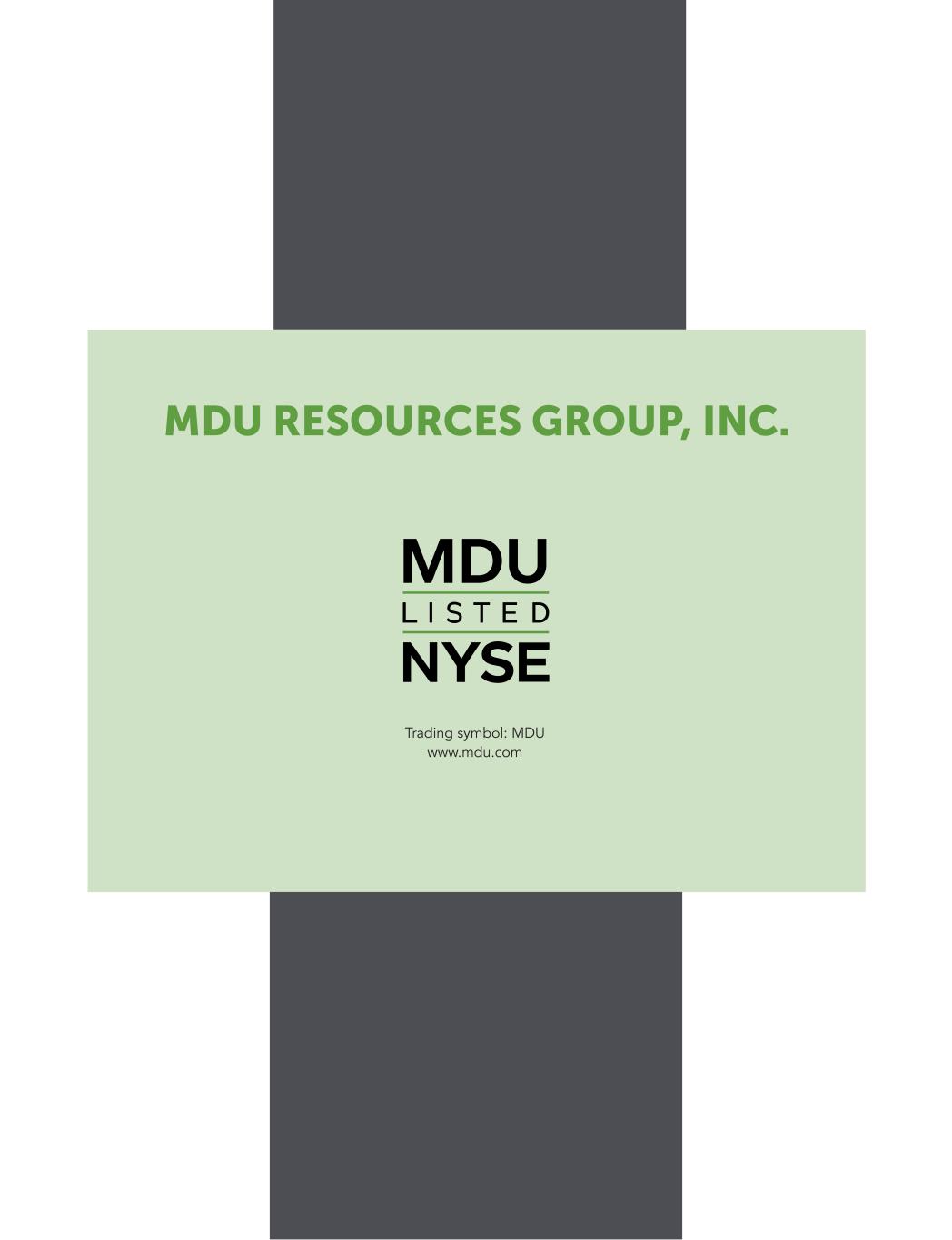 MDU RESOURCES GROUP, INC. Trading symbol: MDU www.mdu.com