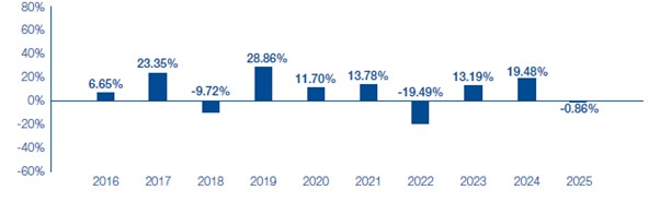 | Lowest Quarterly Results | -26.31% | 3/31/2020 |