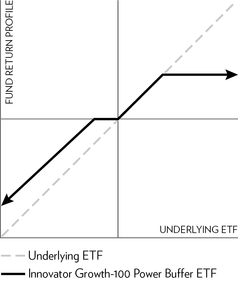 • Buffered Returns. The Fund seeks to provide shareholders that hold Shares for the entire Outcome Period with the “power” Buffer, which seeks to protect against the first 15% of Underlying ETF losses during the Outcome Period. The Fund’s shareholders will bear all Underlying ETF losses exceeding 15% on a one-to-one basis. When the Fund’s annual management fee equal to 0.79% of the Fund’s daily net assets is taken into account, the net Buffer for an Outcome Period is 14.21%.