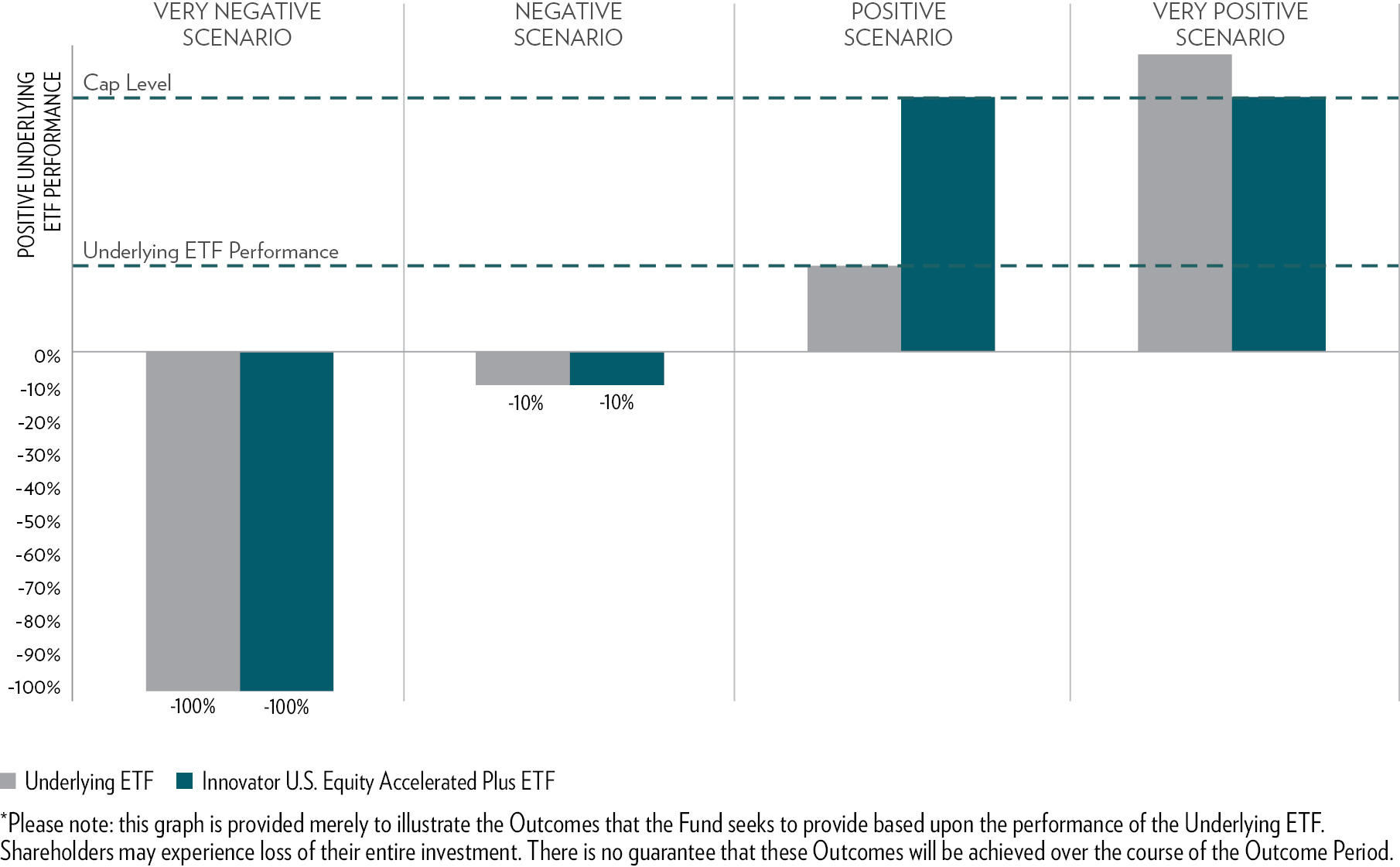 Potential Upside Accelerated Return Subject to a Cap. The Fund’s potential upside returns are unlike other investment products. If the Underlying ETF increases in value over the duration of the Outcome Period, the Fund seeks to provide returns that are three times the increase experienced by the Underlying ETF, subject to the Cap. The Cap represents the maximum percentage return an investor can achieve from an investment in the Fund over the duration of the Outcome Period. Therefore, even though the Fund’s returns (and any potential Accelerated Return) are based upon the performance of the Underlying ETF, if the Underlying ETF experiences returns for the Outcome Period in excess of the Cap, the Fund will not participate in such excess returns. The Cap is determined on the first day of the Outcome Period and is 19.47% prior to taking into account any fees or expenses charged to shareholders. When the Fund’s annual Fund management fee of 0.79% of the Fund’s average daily net assets is taken into account, the Cap is 18.68%. The Cap will be further reduced by any shareholder transaction fees, any acquired fund fees and expenses, and any extraordinary expenses incurred by the Fund. The Cap will change from one Outcome Period to the next based upon prevailing market conditions at the beginning of the Outcome Period. The Cap is also set forth on the Fund’s website at www.innovatoretfs.com/xtap.