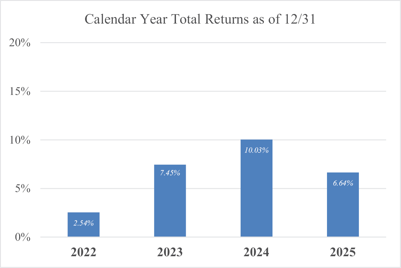* The Fund’s returns listed herein are provided prior to taking into account any fees or expenses charged to shareholders. The Fund’s annual management fee of 0.69% of the Fund’s average daily net assets, any shareholder transaction fees, any acquired fund fees and expenses, and any extraordinary expenses incurred by the Fund will have the effect of reducing the returns listed herein.
