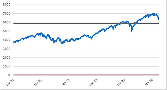 The following graph sets forth the daily historical performance of the SPX in the period from January 2, 2021 through the Pricing Date. We obtained this historical data from Bloomberg L.P. We have not independently verified the accuracy or completeness of the information obtained from Bloomberg L.P. The horizontal line in the graph represents the SPX’s Threshold Value of 5,867.941, which is 92.50% of the SPX’s Starting Value of 6,343.72.
