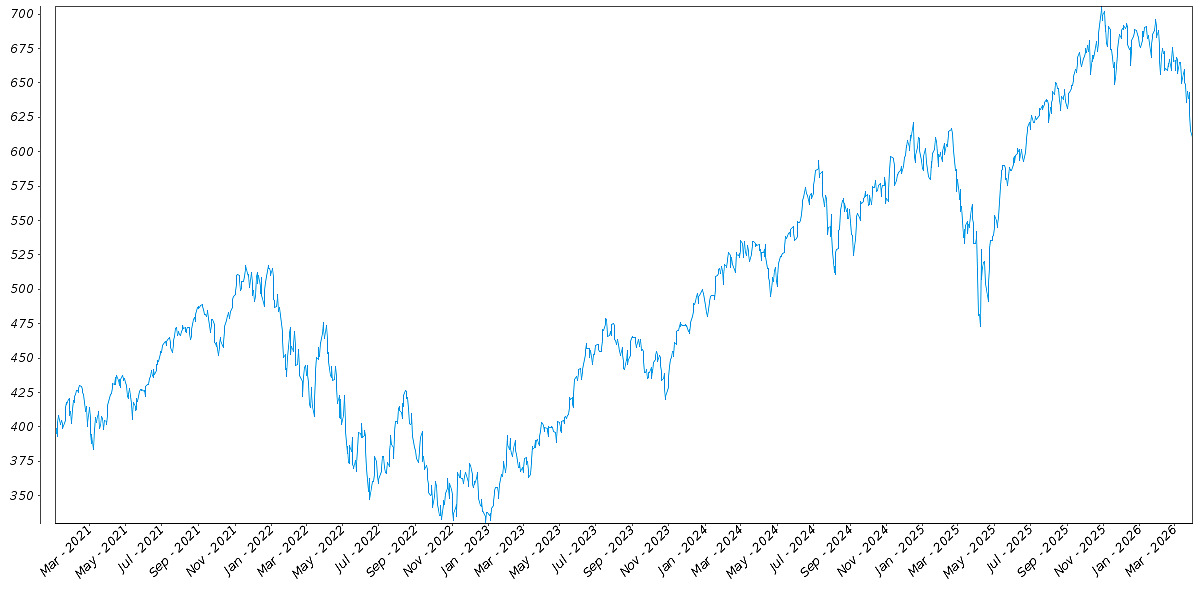 The following graph sets forth the daily historical performance of the SPXFP in the period from January 2, 2021 through March 30, 2026. We obtained this historical data from Bloomberg L.P. We have not independently verified the accuracy or completeness of the information obtained from Bloomberg L.P. On March 30, 2026, the closing level of the SPXFP was 512.70.