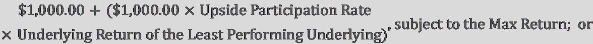 The Redemption Amount per $1,000.00 in principal amount of Notes will be: a) If the Ending Value of the Least Performing Underlying is greater than its Starting Value: