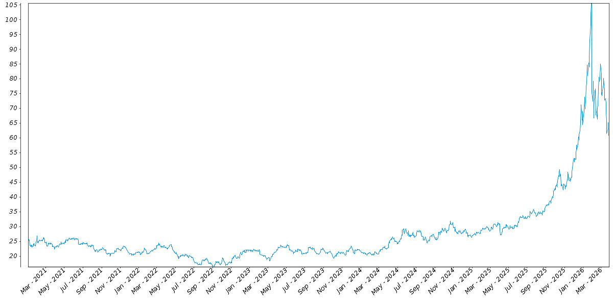 The following graph sets forth the daily historical performance of the SLV in the period from January 2, 2021 through March 27, 2026. We obtained this historical data from Bloomberg L.P. We have not independently verified the accuracy or completeness of the information obtained from Bloomberg L.P. On March 27, 2026, the Closing Market Price of the SLV was $63.44.