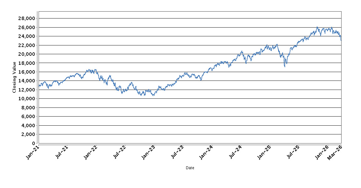 The graph below sets forth the historical performance of the NDX Index based on the daily Closing Value from January 4, 2021 through March 30, 2026. We obtained the Closing Values shown in the graph below from Bloomberg. We have not independently verified the accuracy or completeness of the information obtained from Bloomberg.