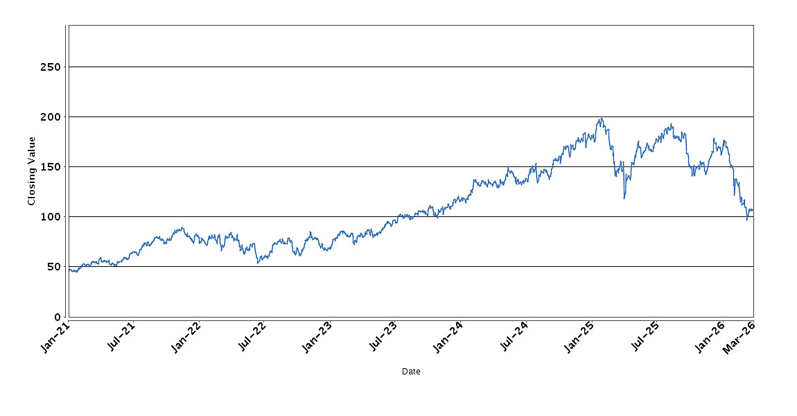 The graph below sets forth the historical performance of the Reference Asset based on the daily Closing Value from January 4, 2021 through March 31, 2026. We obtained the Closing Values shown in the graph below from Bloomberg. We have not independently verified the accuracy or completeness of the information obtained from Bloomberg. These historical closing values may have been adjusted to reflect certain corporate actions such as stock splits and reverse stock splits.