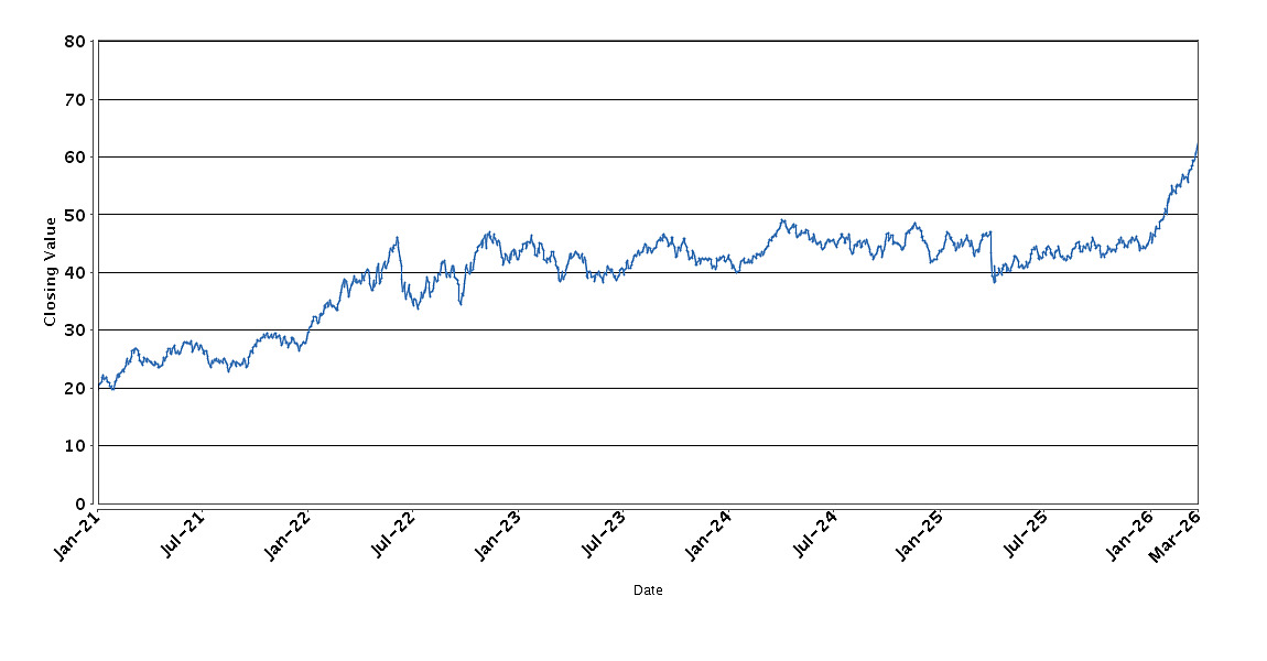 The graph below sets forth the historical performance of the XLE Fund based on the daily Closing Value from January 4, 2021 through March 30, 2026. We obtained the Closing Values shown in the graph below from Bloomberg. We have not independently verified the accuracy or completeness of the information obtained from Bloomberg.