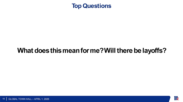 15 15 GLOBAL TOWN HALL – APRIL 1, 2026 What does this mean for me? Will there be layoffs? Top Questions