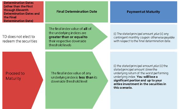 determination date. If TD elects to redeem the securities prior to maturity, the securities will be redeemed for an amount per security equal to the early redemption payment on the redemption date. No further payments will be made on the
