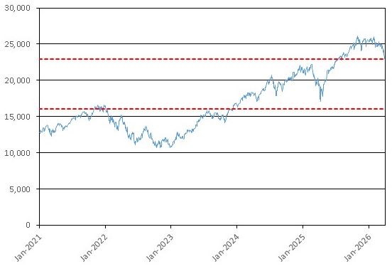 16,067.366, which is equal to 70.00% of the initial index value of the Nasdaq-100 Index®