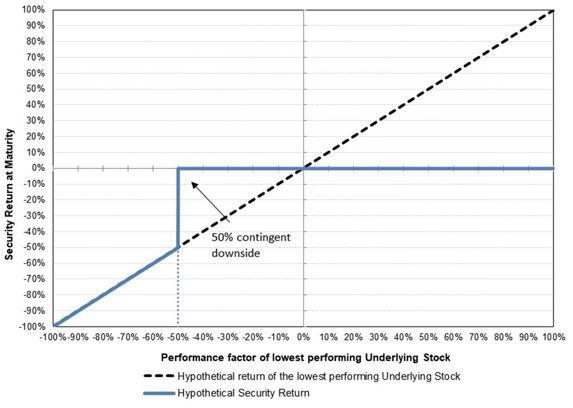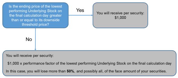 of the lowest performing Underlying Stock on the final calculation day is greater than or equal to its downside threshold price. If the stock closing price of the lowest performing Underlying Stock on the final calculation day is less