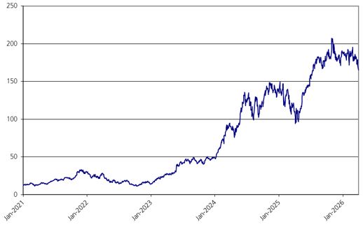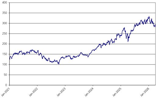 Performance factor (stock closing price on calculation day #1 divided by starting price):