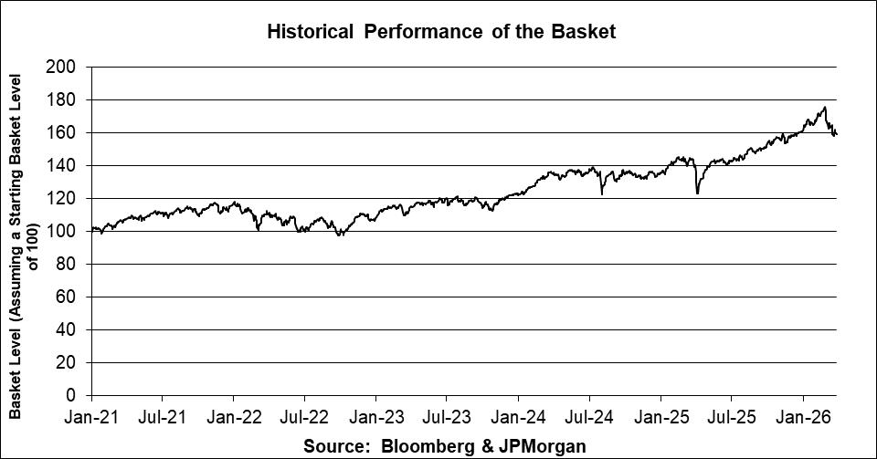The following graph is based on the basket closing levels for the period from January 4, 2021 through March 30, 2026, assuming that the basket closing level was 100 on January 4, 2021. We derived the basket closing levels based on the method of calculating the basket closing level as described in this pricing supplement and on the closing levels of the relevant basket underliers on the relevant dates. We obtained the closing levels reflected in the graph below from the Bloomberg Professional® service (“Bloomberg”), without independent verification. The basket closing level has been normalized such that