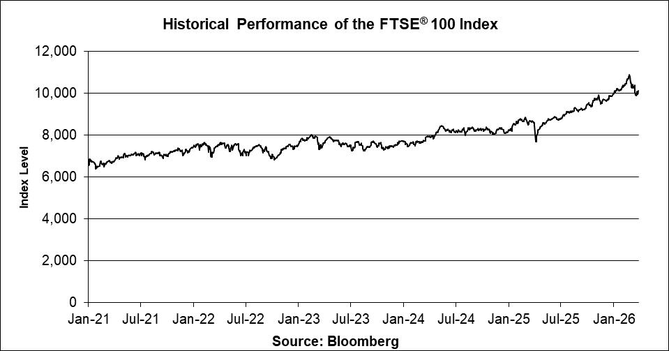 The FTSE® 100 Index is an index calculated, published and disseminated by FTSE Russell. The FTSE® 100 Index measures the composite price performance of stocks of the largest 100 companies (determined on the basis of market capitalization) traded on the London Stock Exchange. For additional information about the FTSE® 100 Index, see the information set forth under “Equity Index Descriptions — The FTSE® 100 Index” on page US-8 of the accompanying underlying supplement.
