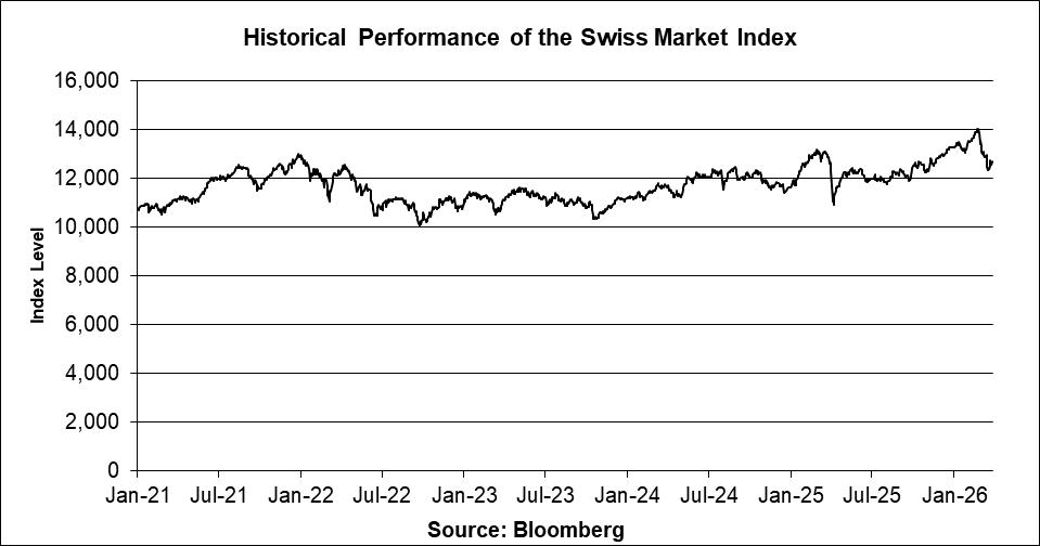 | Swiss Market Index | SMI | 11.00% | 12,668.67 |