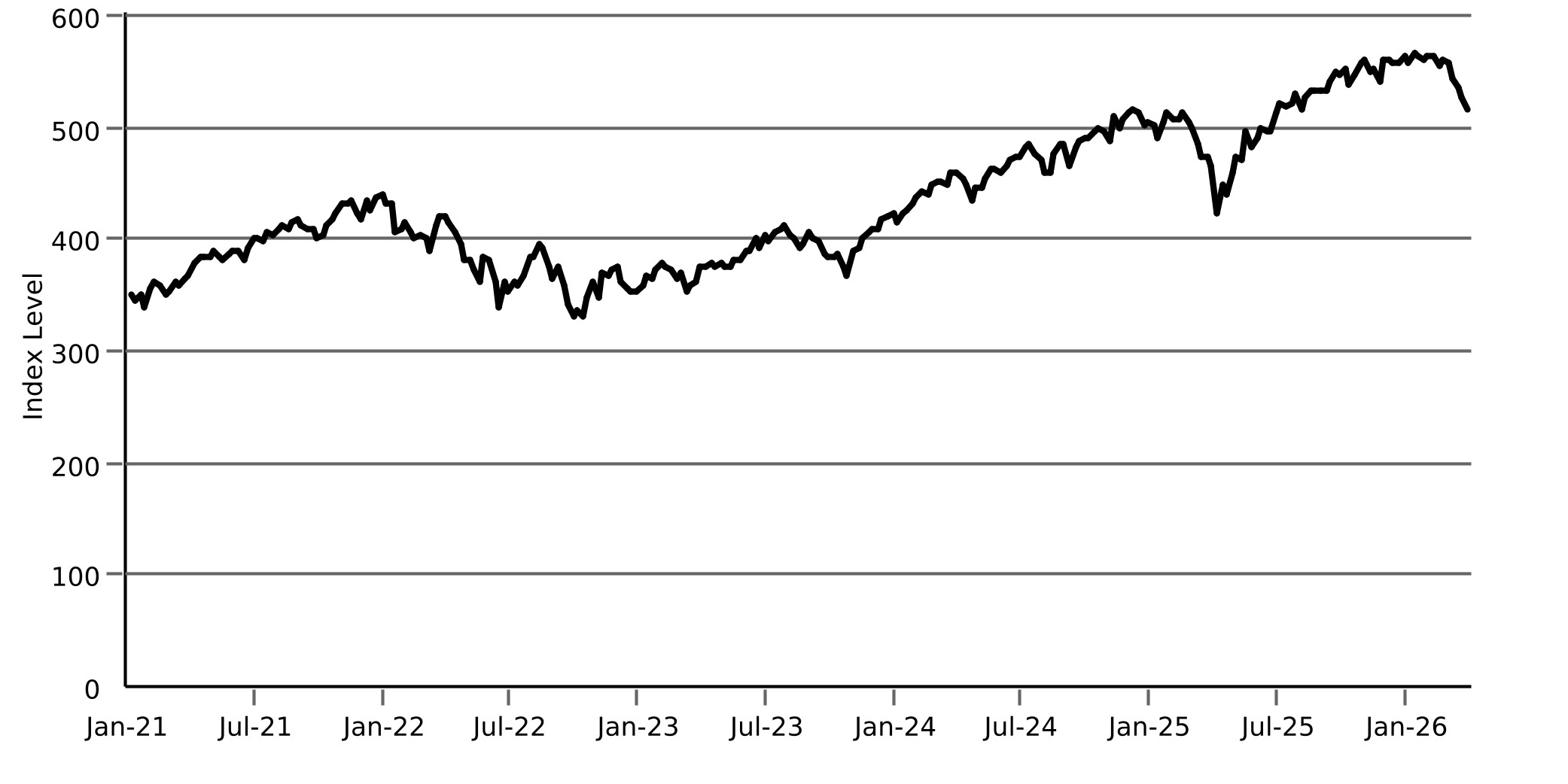 The following graph sets forth the historical performance of the Index based on the weekly historical closing levels of the Index from January 8, 2021 through March 27, 2026. The closing level of the Index on March 30, 2026 was 512.70. We obtained the closing levels above and below from the Bloomberg Professional® service (“Bloomberg”), without independent verification.