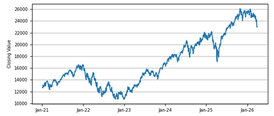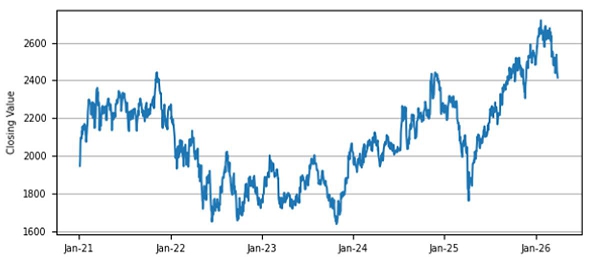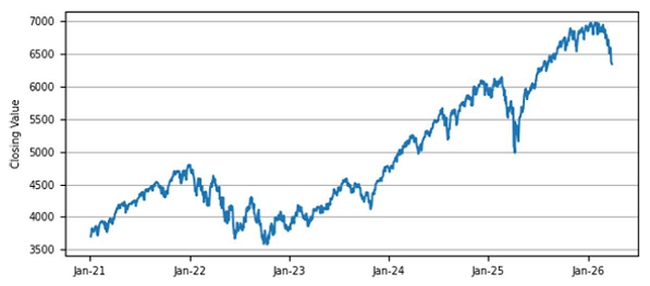 The following graph sets forth the historical performance of the SPX based on the daily historical closing values from January 1, 2021 through March 31, 2026. We obtained the closing values below from Bloomberg. We have not undertaken any independent review of, or made any due diligence inquiry with respect to, the information obtained from Bloomberg.