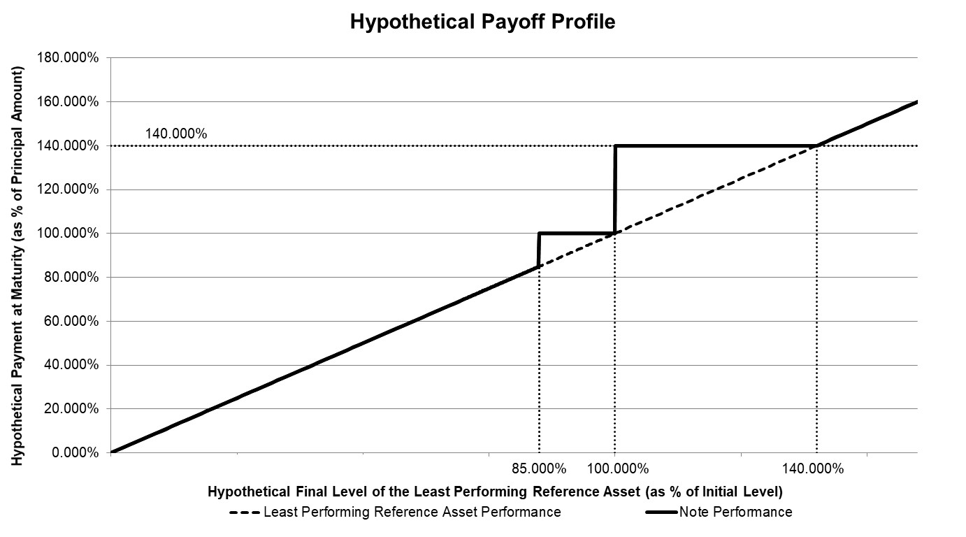 ●if the final level of each reference asset is greater than or equal to its initial level, the greater of (i) the threshold settlement amount and (ii) the sum of (a) $1,000 plus (b) the product of (1) $1,000 times (2) the least performing reference asset return;