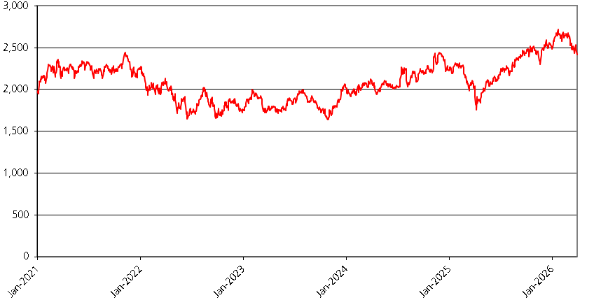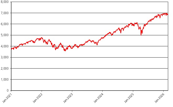 We obtained the information regarding the historical performance of the SPX in the graph below from Bloomberg, without independent review or verification. The graph below illustrates the performance of the SPX from January 1, 2021 through March 30, 2026. The closing level of the SPX on March 30, 2026 was 6,343.72.