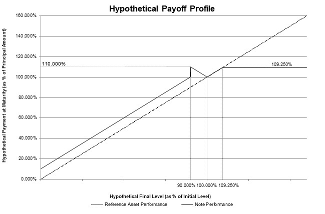 ●if the final level is equal to the initial level or less than the initial level, but not by more than 10.00% (the reference asset return is zero or negative but is equal to or greater than -10.00%), the sum of (i) $1,000 plus (ii) the product of (a) $1,000 times (b) the absolute value of the reference asset return; or