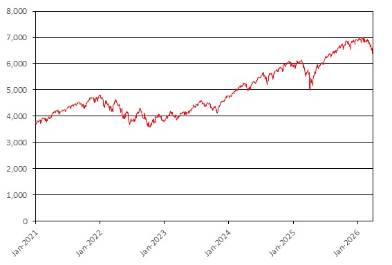 We obtained the information regarding the historical performance of the reference asset in the graph below from Bloomberg, without independent review or verification. The graph below illustrates the performance of the reference asset from January 1, 2021 through March 30, 2026. The closing level of the reference asset on March 30, 2026 was 6,343.72.