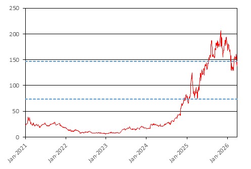 The closing price of Palantir on March 31, 2026 was $146.28 (the “hypothetical initial share price”). The graph below shows the closing prices of Palantir for each day from January 1, 2021 to March 31, 2026. The dotted lines represent a hypothetical downside threshold price of $73.14 and a hypothetical call threshold price of $146.28, which are equal to 50.00% and 100.00%, respectively, of the hypothetical initial share price. The actual downside threshold price and call threshold price will be set on the pricing date. We obtained the information in the graph below from Bloomberg Professional® service (“Bloomberg”), without independent verification. The closing prices may be adjusted by Bloomberg for corporate actions such as stock splits, public offerings, mergers and acquisitions, spin-offs, delistings and bankruptcy. BNS has not undertaken an independent review or due diligence of any publicly available information obtained from Bloomberg. The historical performance of Palantir should not be taken as an indication of its future performance, and no assurance can be given as to the price of Palantir at any time, including the determination dates.