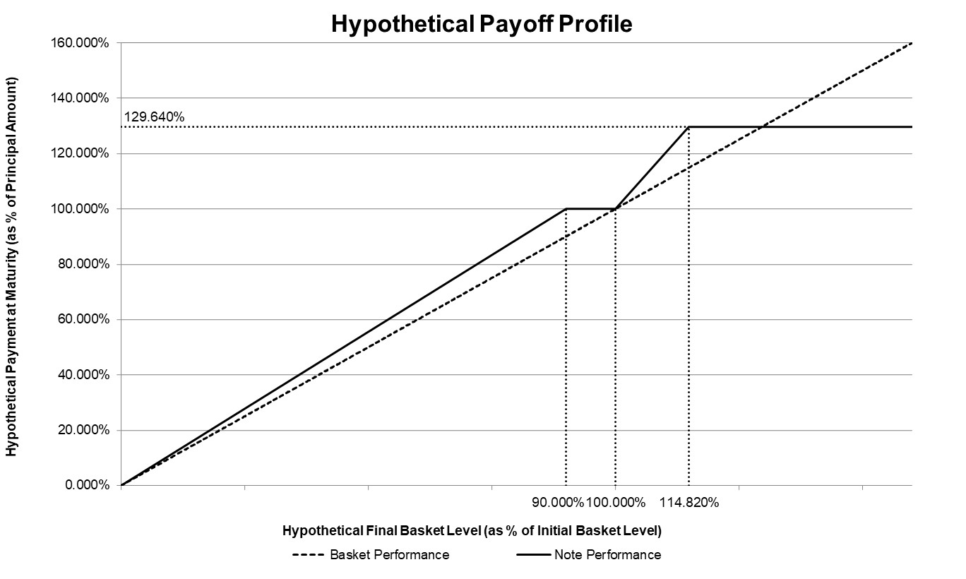 ●if the final basket level is less than the initial basket level by more than 10.00% (the basket return is negative and is less than -10.00%), you will receive an amount in cash equal to the sum of (i) $1,000 plus (ii) the product of (a) $1,000 times (b) the buffer rate of approximately 111.11% times (c) the sum of the basket return plus 10.00%.