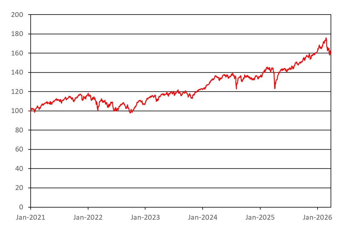 The graph below illustrates the hypothetical performance of the basket from January 1, 2021 through March 30, 2026, based on the daily closing levels of the basket components. Past hypothetical performance of the basket is not indicative of the future performance of the basket.