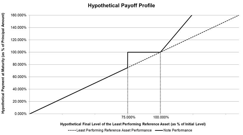 ●if the final level of each reference asset is greater than its initial level, the sum of (i) $1,000 plus (ii) the product of (a) $1,000 times (b) the least performing reference asset return times (c) the participation rate;