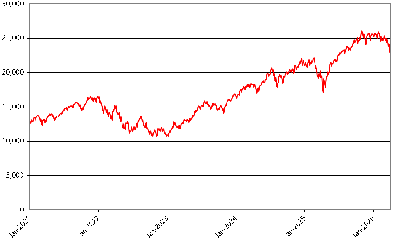 We obtained the information regarding the historical performance of the NDX in the graph below from Bloomberg, without independent review or verification. The graph below illustrates the performance of the NDX from January 1, 2021 through March 30, 2026. The closing level of the NDX on March 30, 2026 was 22,953.38.