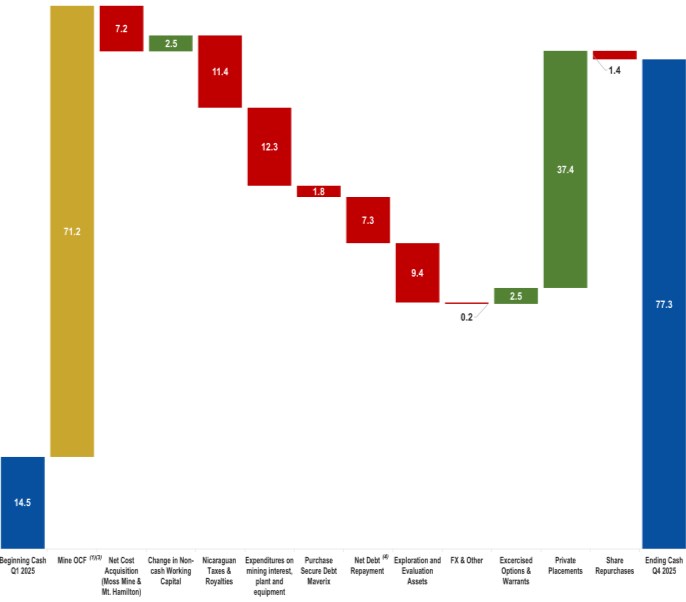 4) Includes repayment of the silver loan to Sailfish in April 2025, the repayment of the Wexford Loan in October 2025 and other lease payments.