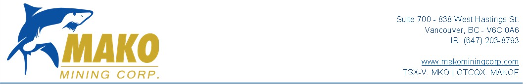 For further information: Mako Mining Corp., Akiba Leisman, Chief Executive Officer, Telephone: 917-558-5289, E-mail: aleisman@makominingcorp.com or visit our website at www.makominingcorp.com and SEDAR www.sedar.ca.