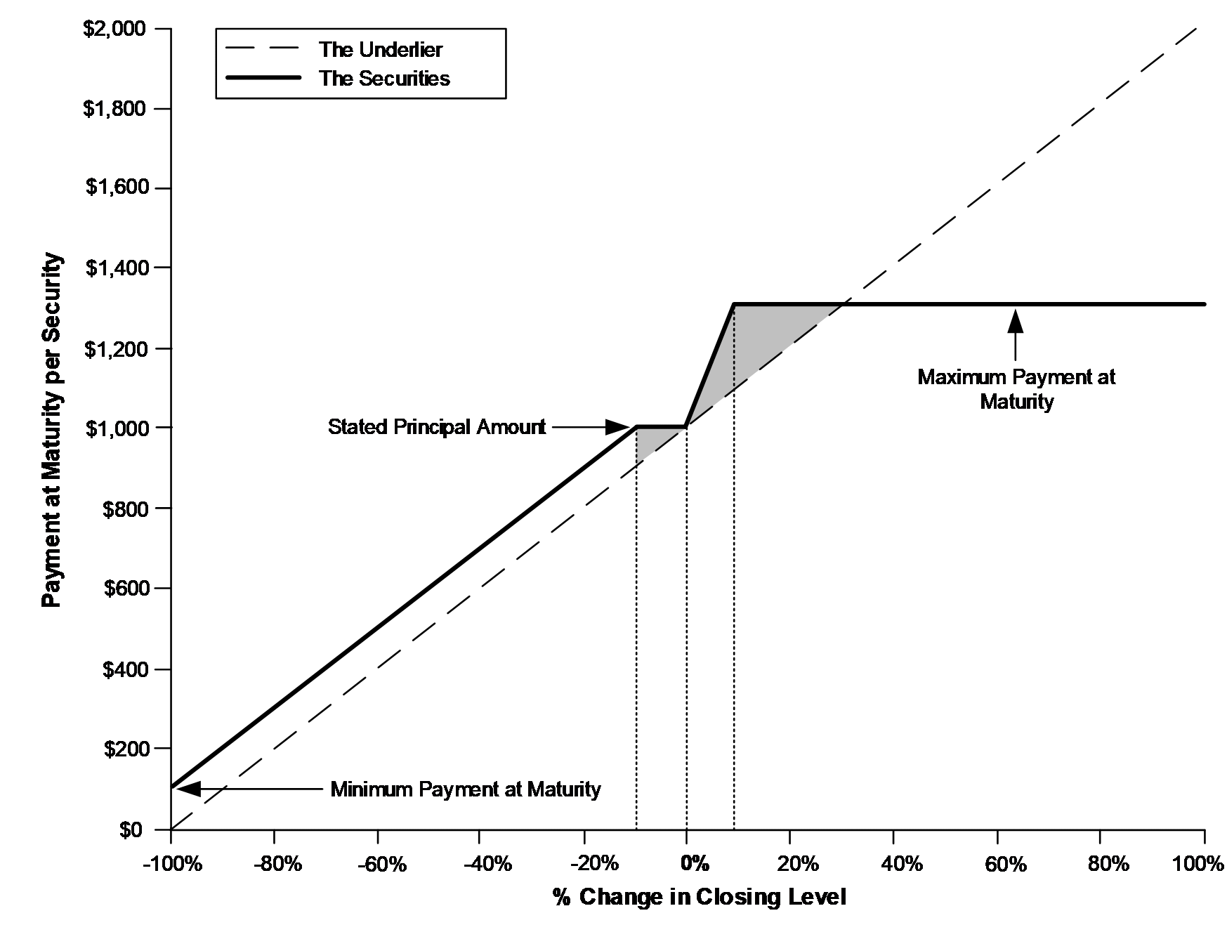 oIf the underlier appreciates 5%, investors will receive $1,150 per security, or 115% of the stated principal amount.