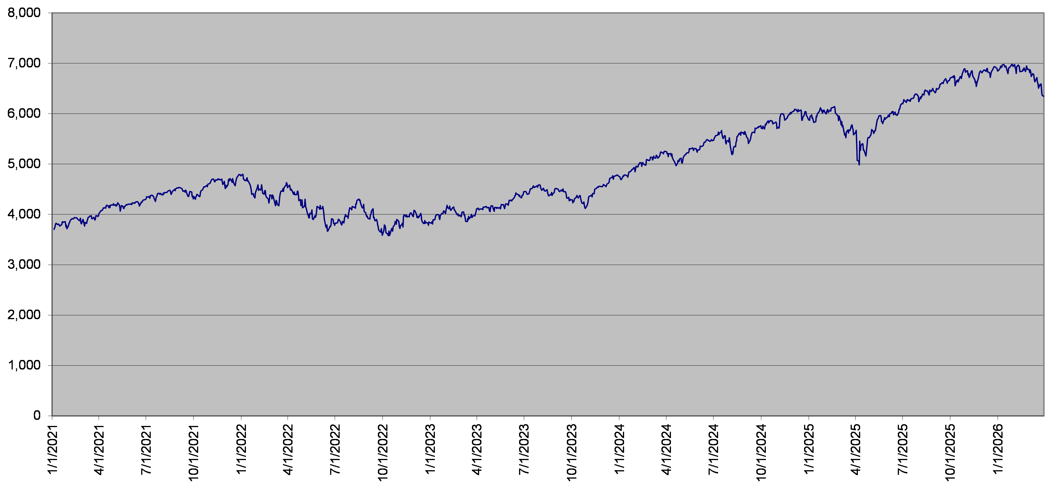 The closing level of the underlier on March 30, 2026 was 6,343.72. The following graph sets forth the daily closing levels of the underlier for the period noted below. We obtained the historical information presented in this document from Bloomberg Financial Markets, without independent verification. The underlier has at times experienced periods of high volatility. You should not take the historical closing levels of the underlier as an indication of its future performance, and no assurance can be given as to the closing level of the underlier at any time.